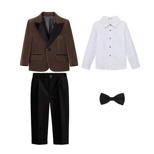 Completo da fedi per bambini, 4 pezzi, blazer pantaloni camicie cravatta ragazzo abito formale casual all'aperto festa moda fresco basic tinta unita nero vino viola poliestere