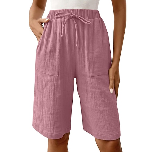 Per donna Chinos Shorts Vacanza Moda Streetwear Lunghezza al ginocchio Vita Alta Semplice Tasca Fascia Elastica Comodo Comodità Morbido Elasticizzato All'aperto Streetwear Nero Bianco Rosa Vino