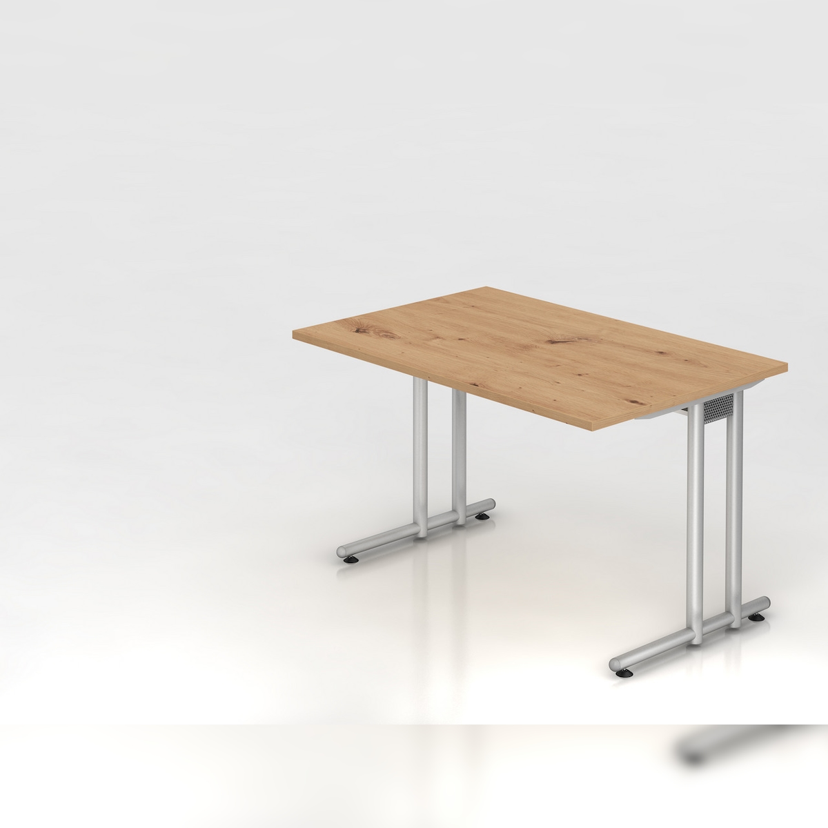 PROREGAL Schreibtisch Markku | Ahorn | BxT 180x80cm | Arbeitshöhe 72cm | höhenjustierbar 0-10 mm | C-Fuß-Gestell Silber | Bürotisch