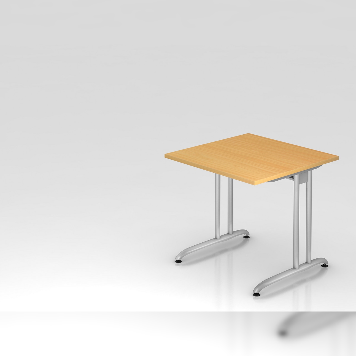 PROREGAL Schreibtisch Markku | Buche | BxT 80x80cm | Arbeitshöhe 72cm | höhenjustierbar 0-10 mm | C-Fuß-Gestell Silber | Bürotisch