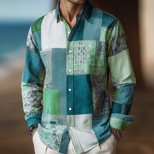 Natale Per uomo Babbo Natale Brutto Natale Muro crepato Camicia Camicia con Bottoni Manica Lunga Vintage Retrò All'aperto Ferie Primavera Autunno Collo ripiegato Stampa 3D Camicia tipo lino Verde