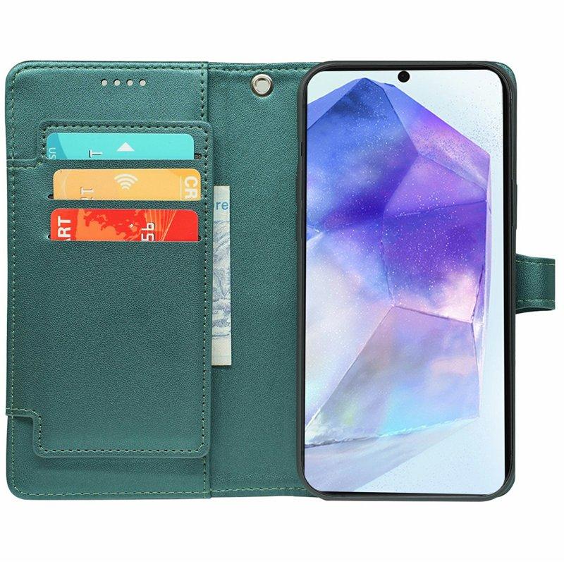 Samsung Galaxy A55 5G Plånboksfodral Konstläder Med Axelrem - Grön