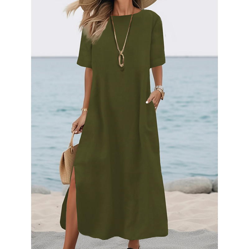 Women's ArmyGreen Black White Summer Spring Fall Maxi Dress 100% Cotton White Dress Sundress Basic Casual Daily Outdoor Loose Fit Plain Crew Neck