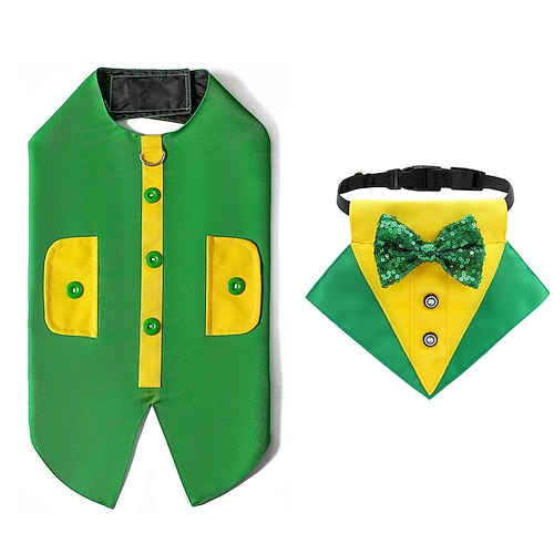 Set da 2 pezzi per il giorno di San Patrizio, smoking e collare per cani, costume verde per animali domestici, bandana, collare con papillon, gilet irlandese per cani di piccola taglia, per feste,
