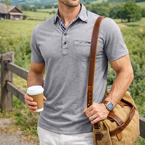 Per uomo Maglia da golf Polo da Golf Casuale Lavoro Bavero Manica Corta Essenziale Moderno Plaid Patchwork Bottoni Estate Primavera Primavera Estate Vestibilità regolare Blu Nero Bianco Rosso Viola