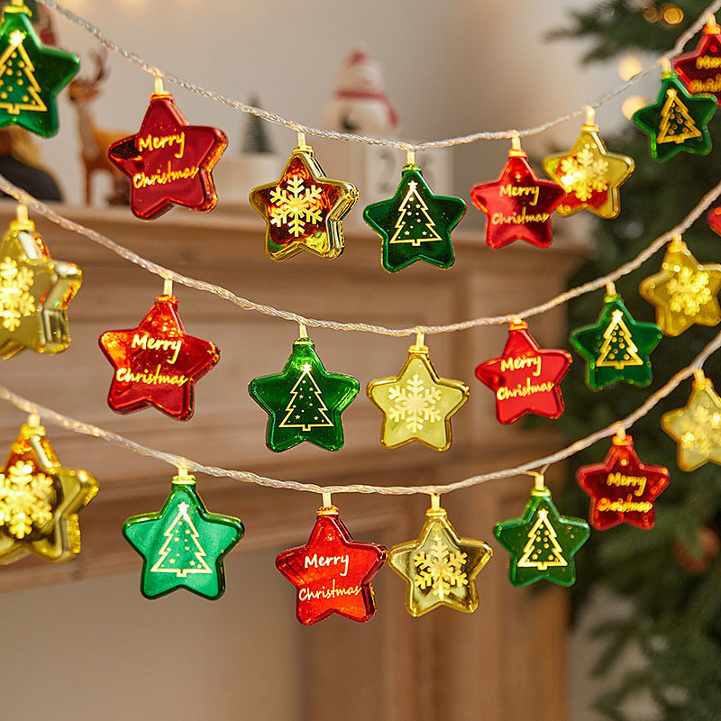 6M-40Leds luminous light string, ball, five pointed star gift box design, indoor porch, balcony, staircase party, festive atmosphere decoration light, USB power supply, AAA battery