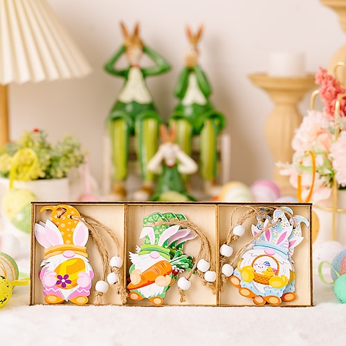 9 pezzi/scatola decorazioni pasquali a forma di gnomo di carota, ornamenti da appendere su mensola in legno rustico per decorazioni primaverili per la casa, decorazioni da parete festive