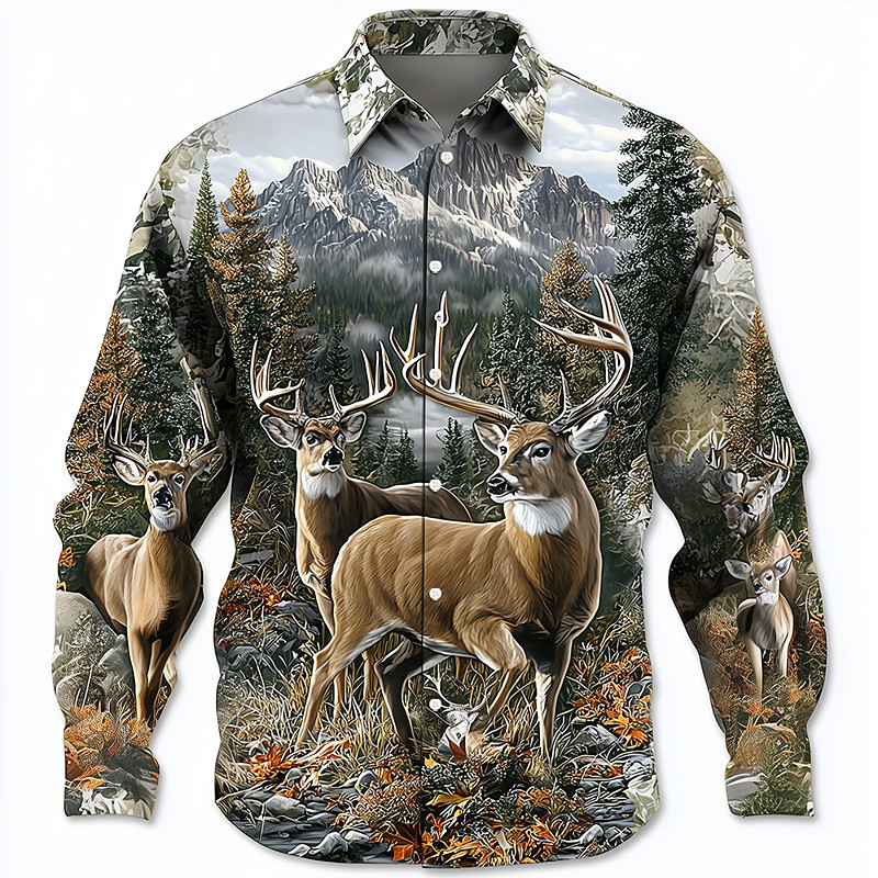 Men's Reindeer Nature Forest Shirt Button Up Shirt Long Sleeve Vintage Retro Outdoor Camping Hiking Hunting Spring Fall Turndown 3D Print Collared Shirts Blue Khaki Light Grey Gray Light Blue