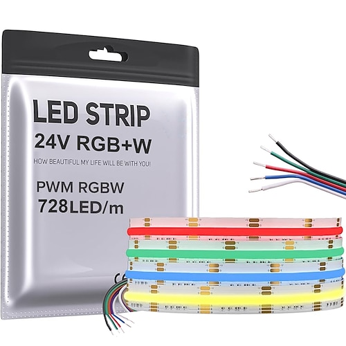 COB LED Strip RGBW Four in One 24.6FT DC24V Color Changing Flexible High-density Uniform Light Suitable for Home Interior Decoration Paired with WIFI APP Music Intelligent Controller 728LED/m