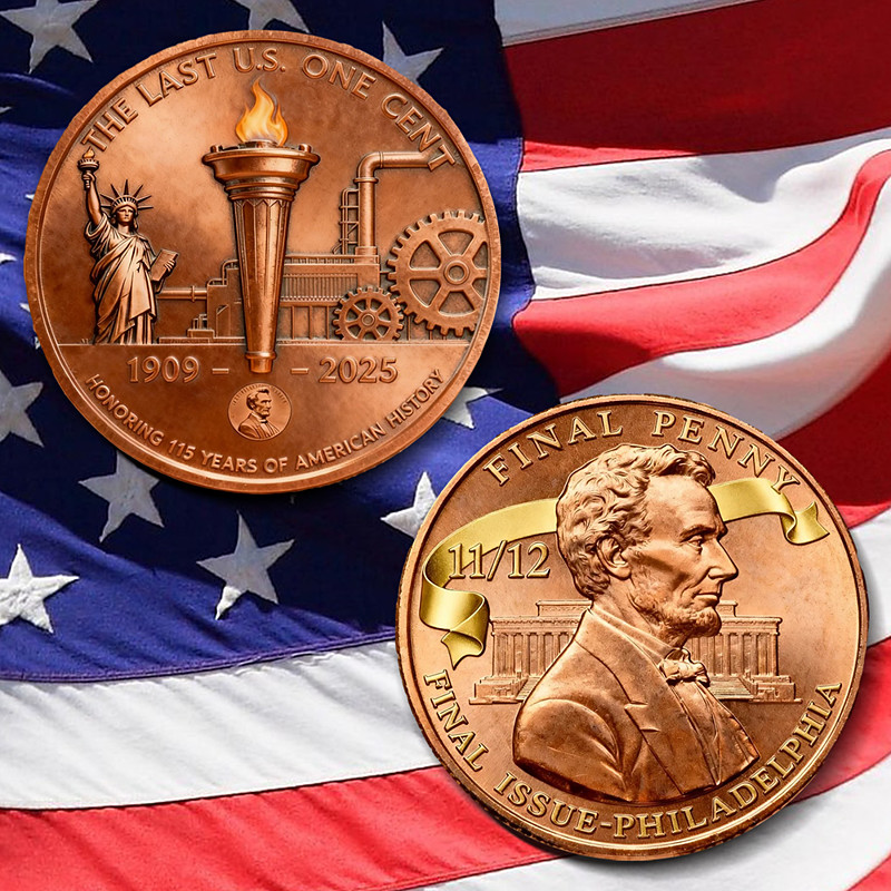 Lincoln Final Penny – Commemorative US Coin, Final Cent Memorial Coin Historical Collectible, Lincoln Memorabilia, Rare Penny Gift for Coin Collectors
