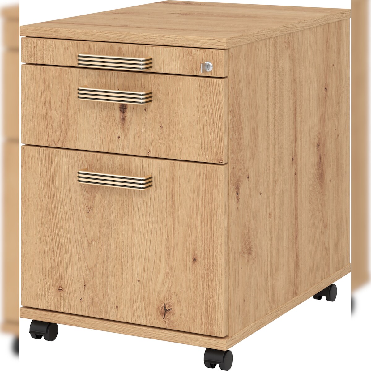 bümö Rollcontainer mit Hängeregistratur, Container abschließbar aus Holz in Asteiche - Rollwagen für's Büro mit Hängeregister als Schreibtisch