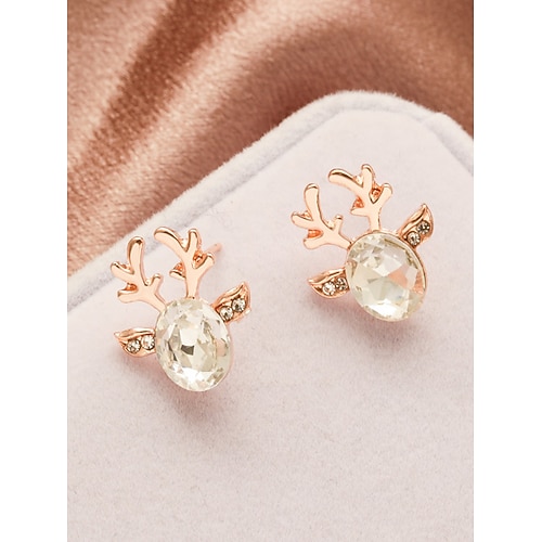 orecchini da donna a forma di renna natalizia: elegante design con cristalli rossi e corna d'argento per feste e occasioni festive, disponibili in più colori