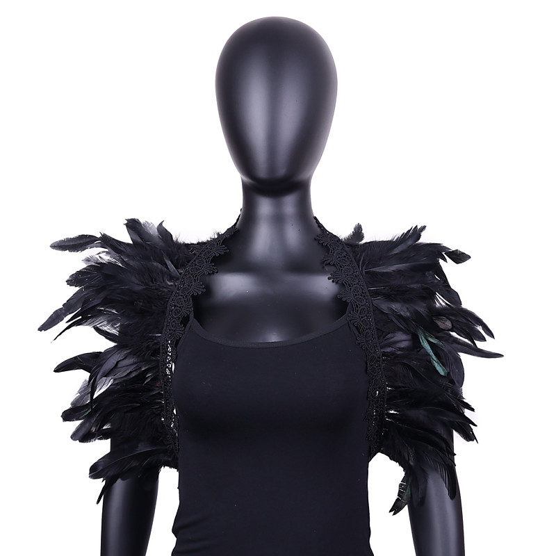 Carnival 2026Rio Carnival Samba Accessories Women's Royal Blue Black Feather Cape Shawl with Lace Trim Brazil Festival Performance Costume