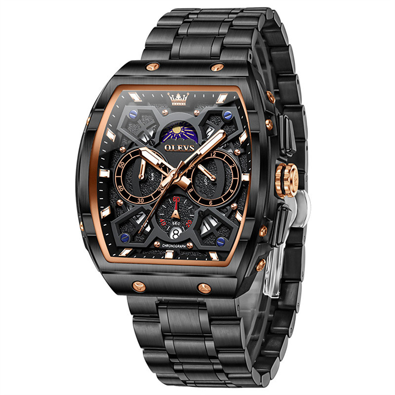 The New Olevs Barrel-Shaped Men'S Business Quartz Watch Luminous Chronograph Calendar Multi-Functional Men'S Casual And Fashionable Quartz Watch Waterproof Sports Wristwatch
