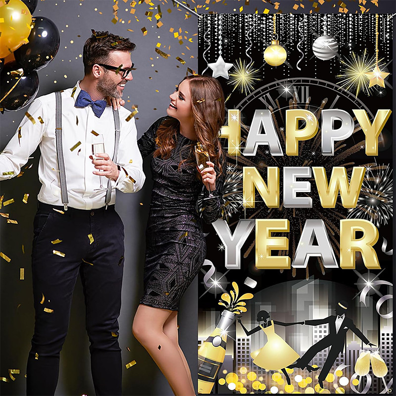 New Year Posters Door Cover Outdoor Banners Happy New Year 2026 Cute 3D Party Dorm Teens Room College Dorm Guys Man Cave Frat Bedroom Shooting Backgrounds Home Decor