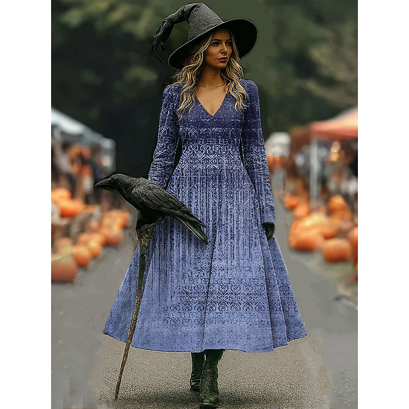 Women's Midi Dress A Line Dress Vacation Casual Daily Holiday Date Regular Fit Ombre Graphic Long Sleeve V Neck Blue Purple Orange Green Fall Winter