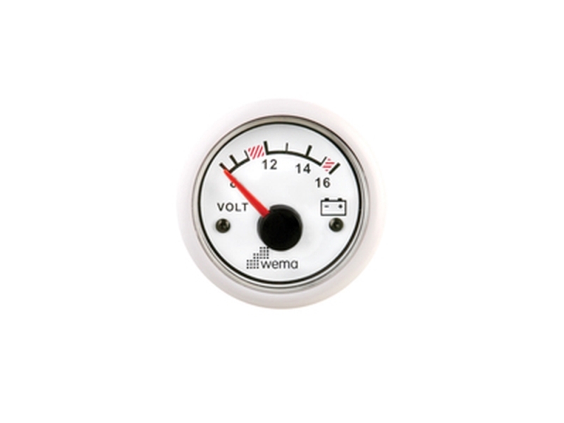 Wema Voltmeter 8-16 Volt DC Hvidt
