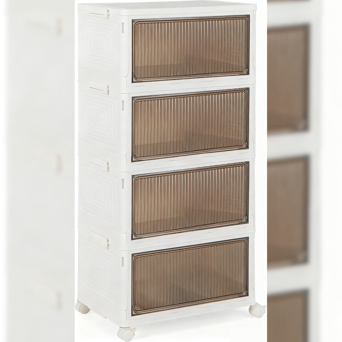 COSTWAY 4-stöckige Aufbewahrungsboxen mit Deckeln und Rädern, Stapelbare Boxen mit Magnetischen Transparenten Türen