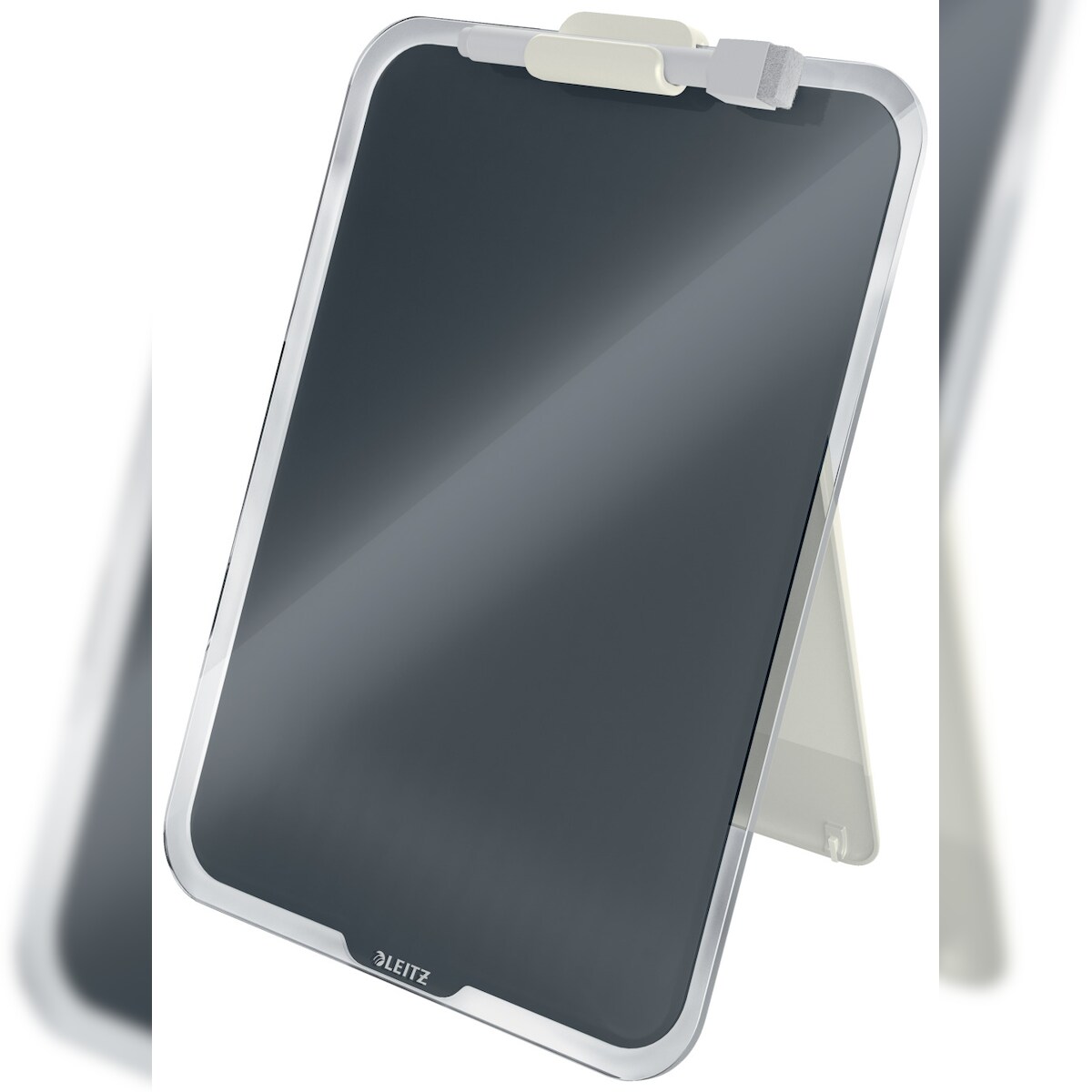LEITZ Desktop-Notizboard Cosy, A4, grau, Sicherheitsglas, trocken abwischbar, inkl. Marker mit Wischer und Stifthalter