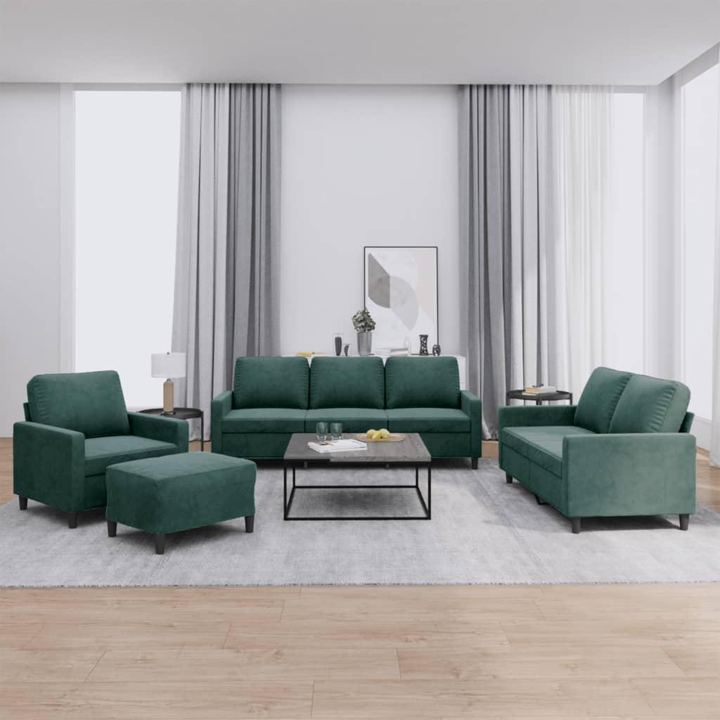 Sofasæt 4 dele med hynder velour mørkegrøn