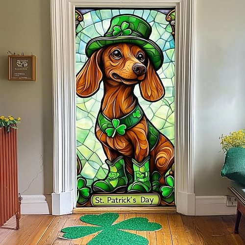 Türdekorationen zum St. Patrick's Day, Türabdeckungen, Kleeblätter, Gold, Glücksbringer, Türteppich, Türvorhang, Dekoration, Hintergrund, Türbanner für drinnen und draußen, für die Haustür im