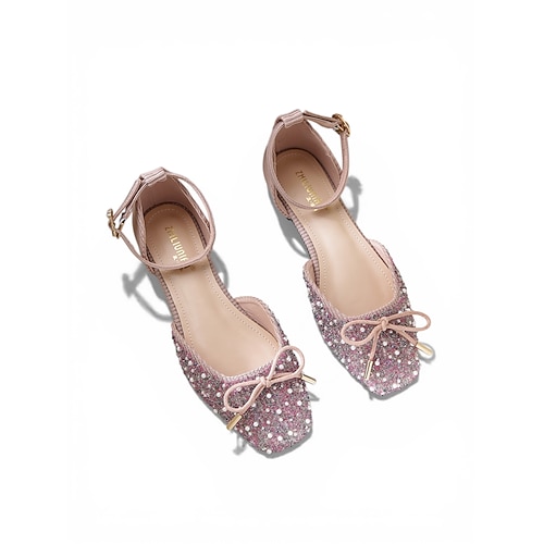 Grüne Damen-Ballerinas mit Strasssteinen – glitzernde Ballerinas mit Schleife und Knöchelriemen für die Feierlichkeiten zum St. Patrick's Day und irische Feste Partykleidung