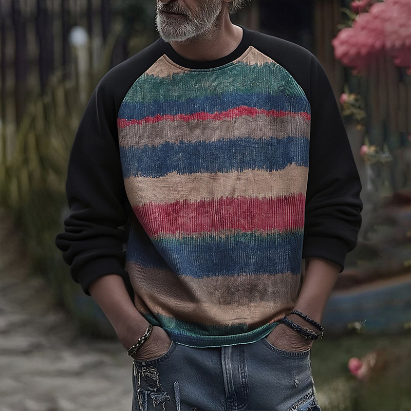 Men's Sweatshirt Black Crew Neck Color Block Stripes Patchwork Sports Outdoor Daily Holiday Polyester Streetwear Basic Casual Spring Fall Clothing Apparel Hoodies Sweatshirts