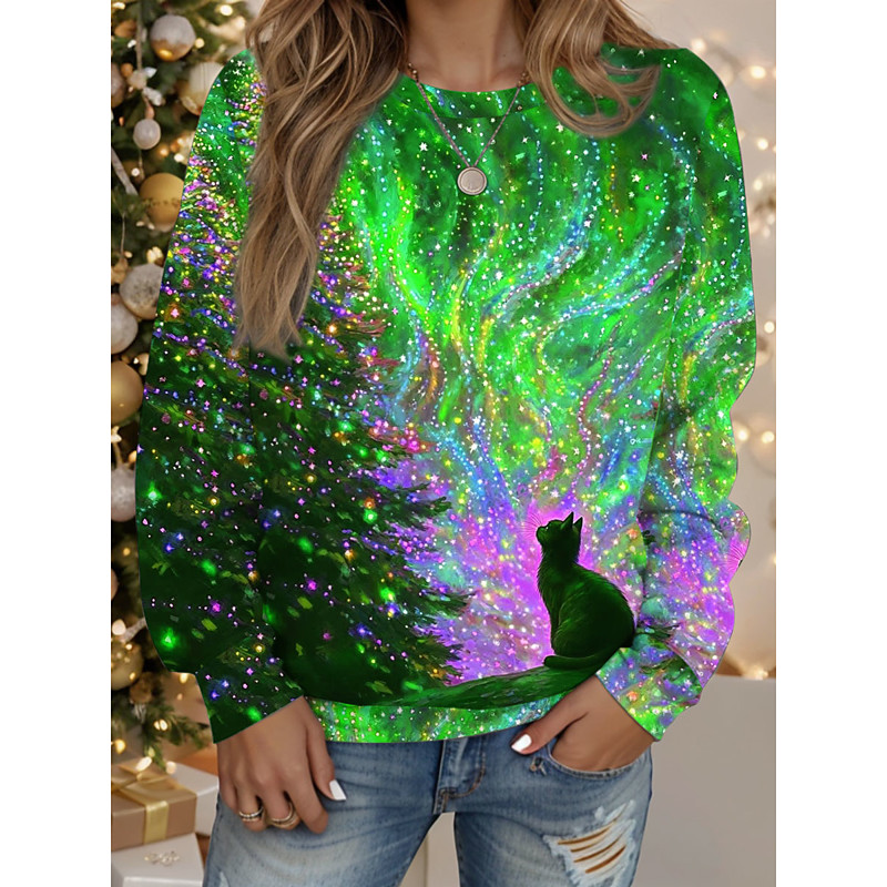 Women's Pullover Sweatshirt Hoodies Graphic Animal Tree Fashion Casual Long Sleeve Crew Neck Regular Tops Street Dailywear Print Blue Purple Green Spring Fall Winter
