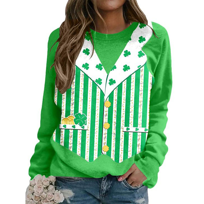 Women's Pullover Sweatshirt Hoodies Graphic Shamrock Fashion Casual Long Sleeve Crew Neck Round Neck Regular Tops Street Dailywear Print Black White Green Spring Fall Winter