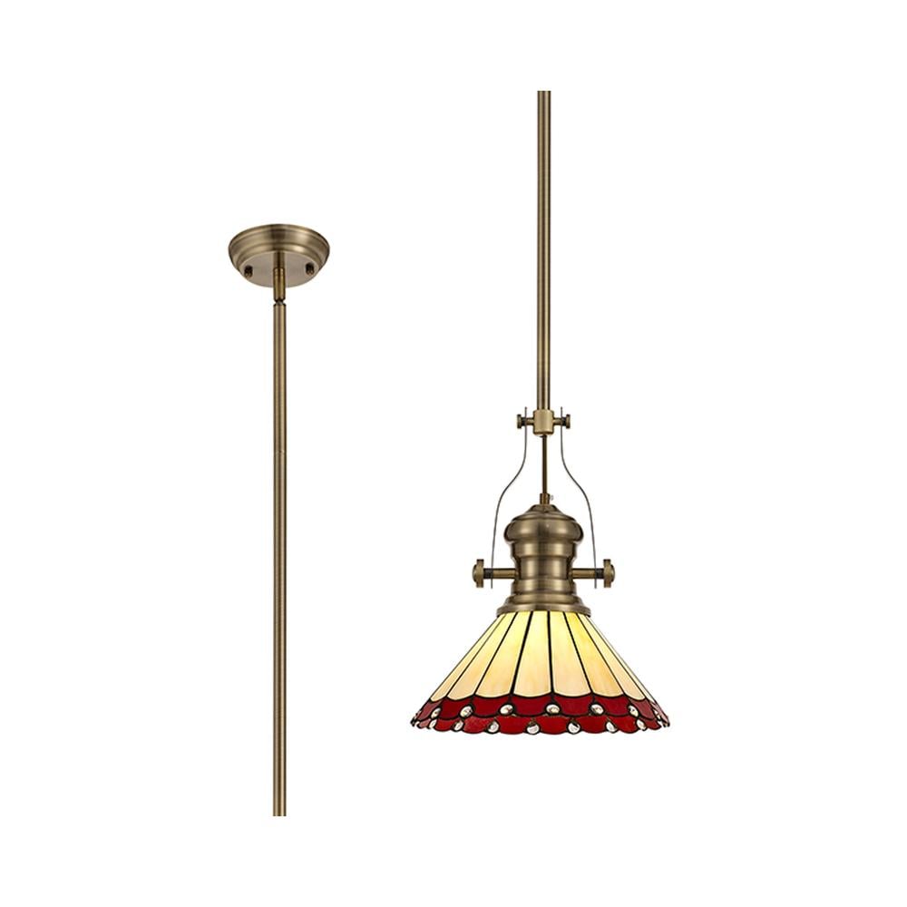 Sleek Pendant Light E27 With 30cm Tiffany Shade Antique Brass/Red/Cream/Crystal Luxuria
