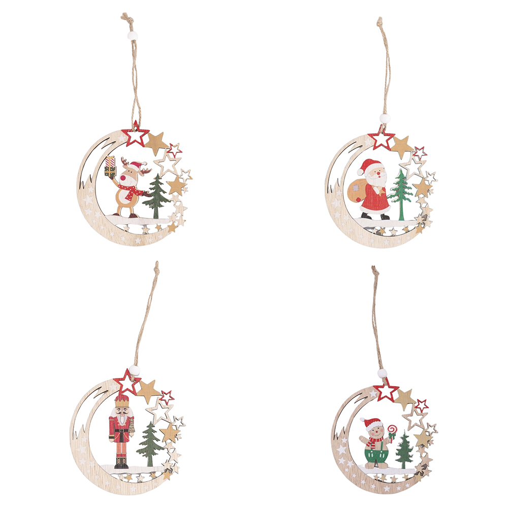 <p>Appendino natalizio tondo 11 cm, in legno con stelle, Santa's House</p>