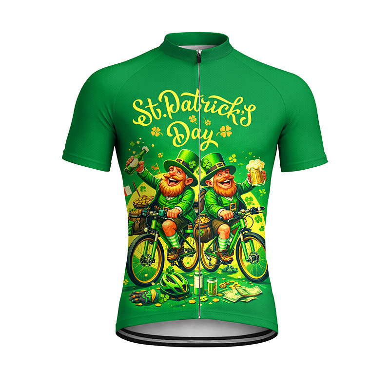 Men St Patrick Jersey Cycling Jersey Downhill Jersey Rainbow Four Leaf Clover Oktoberfest Beer Short Sleeve Bike T Shirt Top with 3 Rear Pockets UV Resistant Fast Dry With Pockets Front Zipper Sports