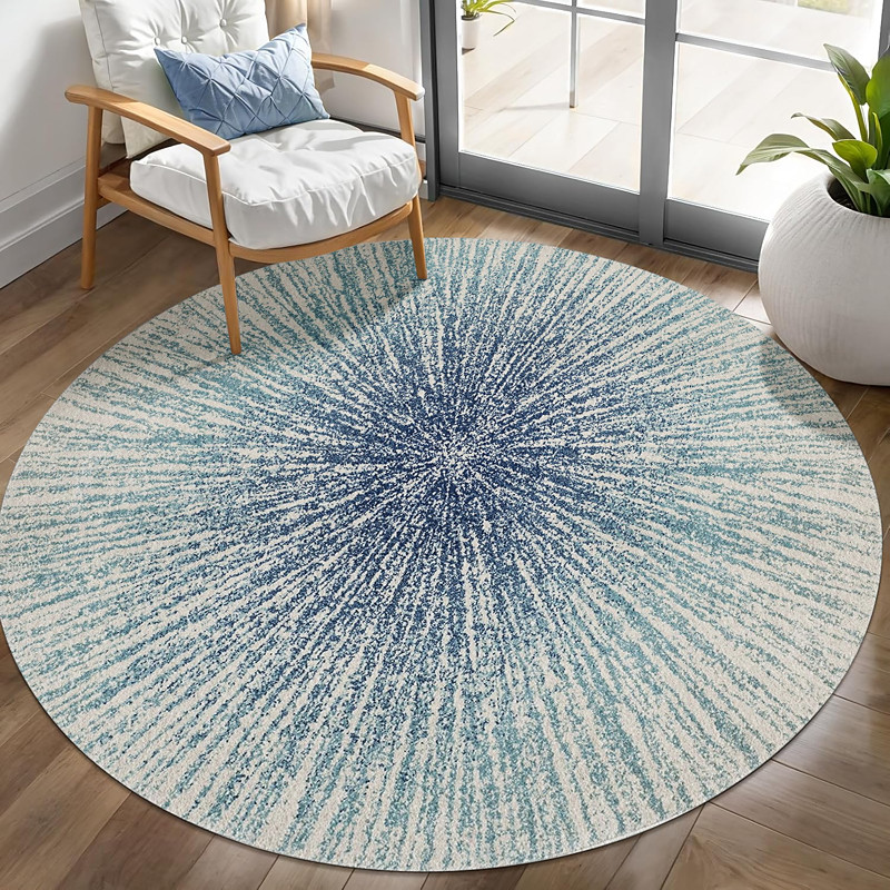Radiant Blue Starburst Round Area Rug, 2D Flat Print, Modern Abstract Floor Mat for Bedroom, Living Room, Non-Slip Design, Stylish Home Decor Rug