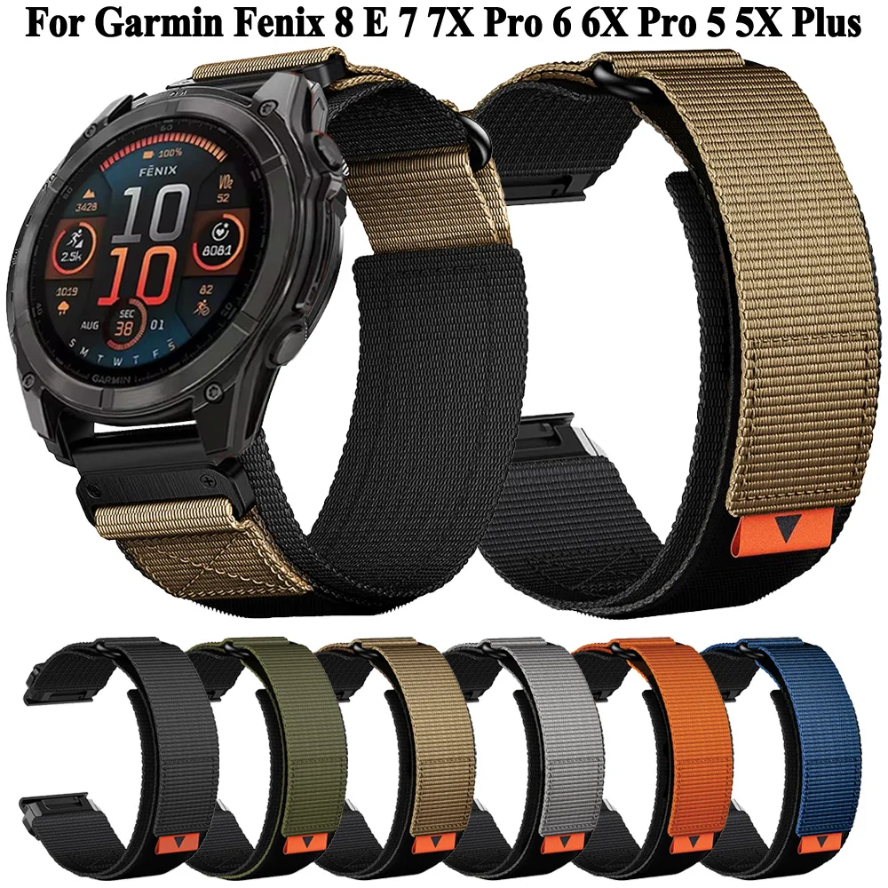 Watch Band for Garmin Fenix 7X 7S 7 Pro Approach S70 Epix Pro 42mm 47mm 51mm Instinct 2X Tactix 7 Amoled Forerunner 955 255 Enduro Marq Descent Quatix 20mm 22mm 26mm Nylon Replacement Strap 20mm