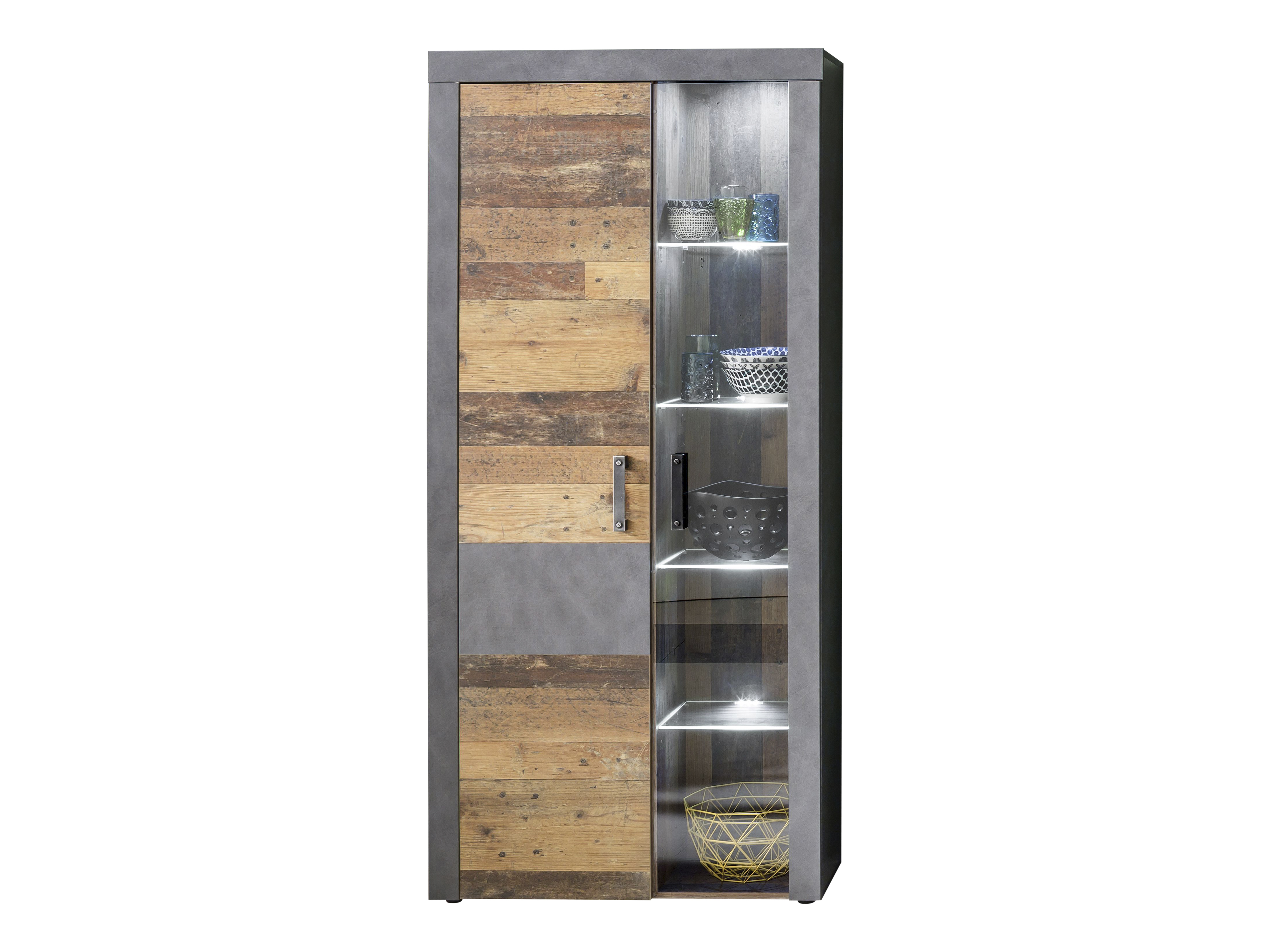 Irina vitrineskab 2 låger, inkl lys til glashylder, grå Matera, Old Wood dekor
