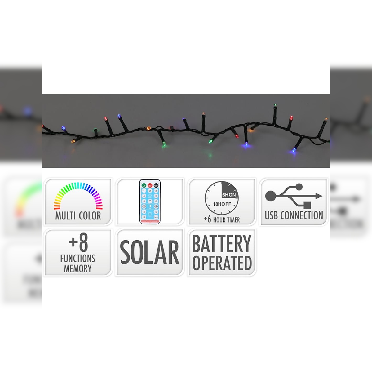 LED-GIRLANDE, 13 MEHRFARBIGE BLINKFUNKTIONEN, SOLAR