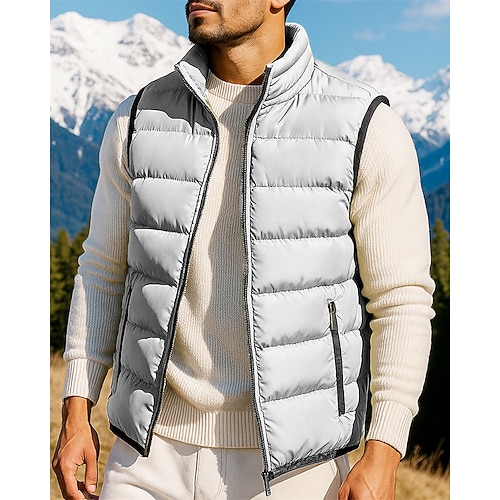 Per uomo Gilet imbottito Gilet Vacanza Quotidiano Data Moda Casual Inverno Tasca Poliestere Caldo Confortevole Tinta unica Cerniera Collo alla coreana Vestibilità regolare Nero Blu marino Grigio Gilet