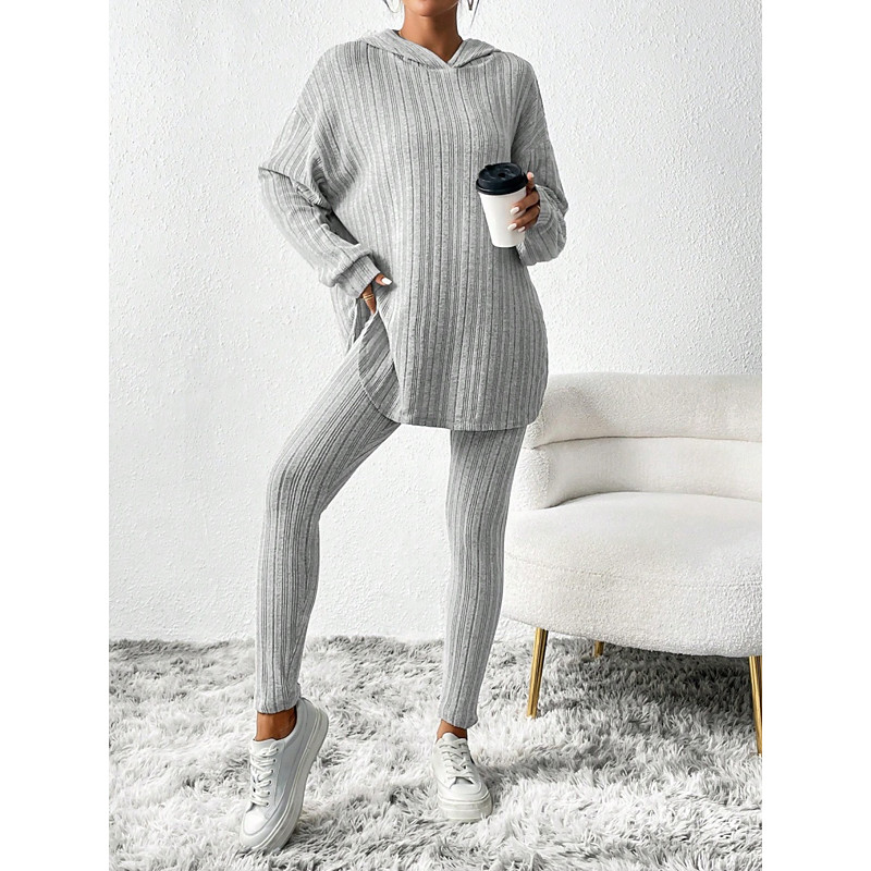 Women's Fashion Streetwear Pants Sets Bolero Top Long Sleeve Hooded Solid Color Outdoor Work Casual Black Wine Army Green Fall Regular Fit