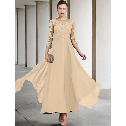 Linea ad A Lunghezza alla caviglia Vestito da Festa Abito da Cocktail Abito da invitata a nozze Abito da cerimonia per signora Manica 3/4 Collo gioiello Elegante Taglie Forti Ospite di nozze