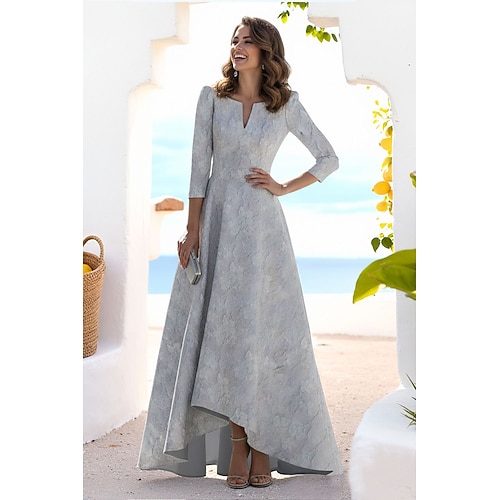 Linea ad A Asimmetrico Lunghezza alla caviglia Vestito da Festa Abito da Cocktail Abito da invitata a nozze Abito da cerimonia per signora Manica 3/4 Scollo a V Elegante Vintage Formale Jacquard con
