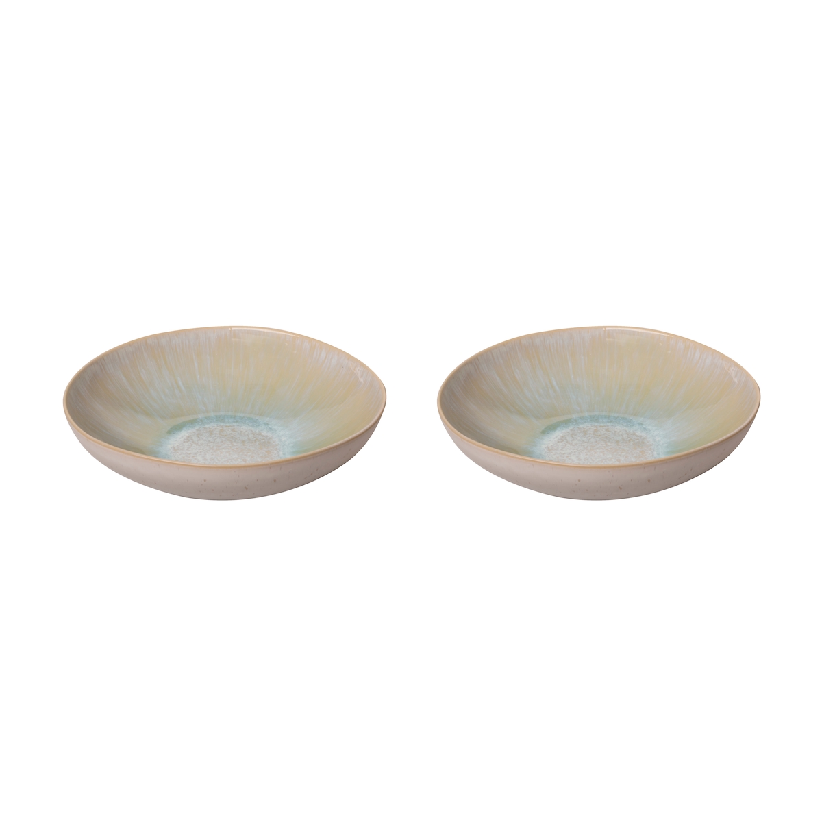 palmer Light Blue Sea große tiefe Teller - 2er-Set, Steinzeug, Ø 22 cm, hellblau Pastell beige, für Pasta, Suppe oder als Servierteller