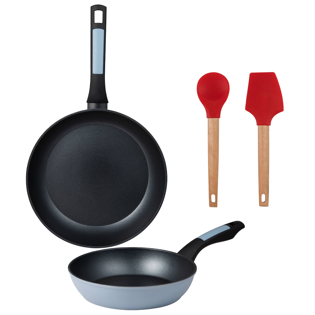 BERGNER - Set aus 2 Pfannen Ø20/26 cm aus gepresstem Aluminium für Induktion geeignet mit Set aus 2 Küchenutensilien EXCALIBUR