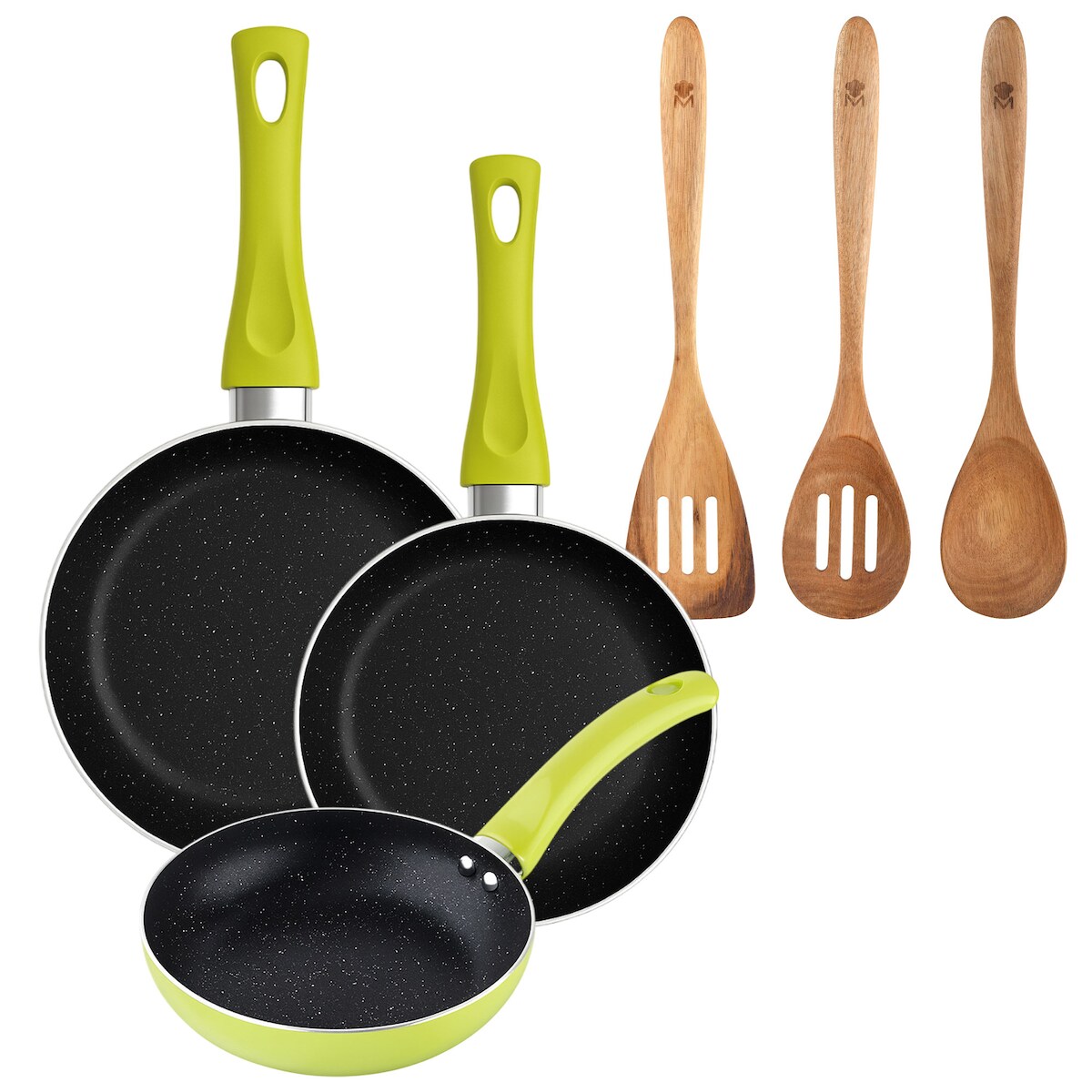 BERGNER - Set aus 3 Pfannen Ø20/Ø24/Ø28 cm gepresstes Aluminium Molen Grün Set 3 Küchenutensilien 32,8x33x7x1,4 cm Xmart