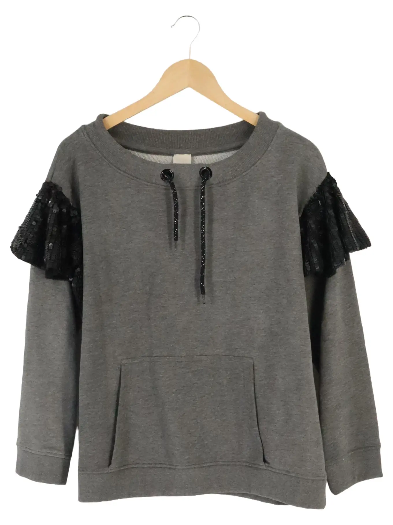 PINKO Damen Sweatshirt XS Grau Spitzenärmel Casual Chic