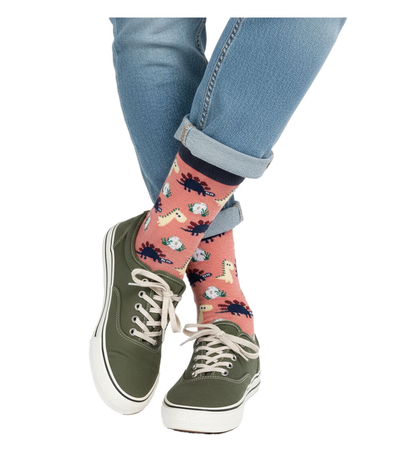 6 Paar Moustard Dinosaurs Chilling Herren Baumwoll-Socken mit Dinosaurier-Print gemusterte lange Strümpfe 18S-DINO Rosa/Blau/Beige