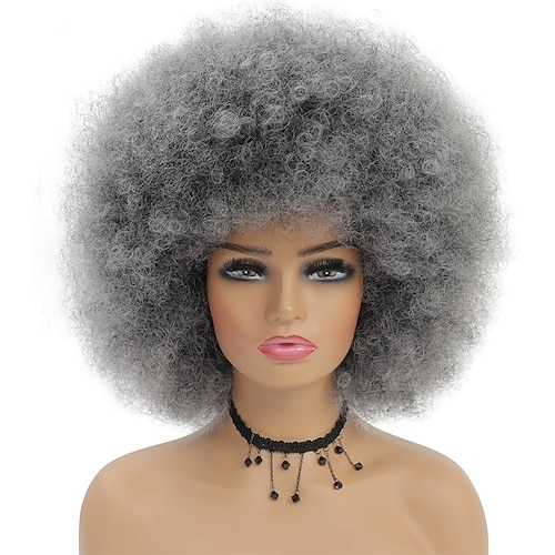 70er Afro Perücken für schwarze Frauen - große Afro Puff Perücke mit Pony kurzes lockiges Kunsthaar für Frauen