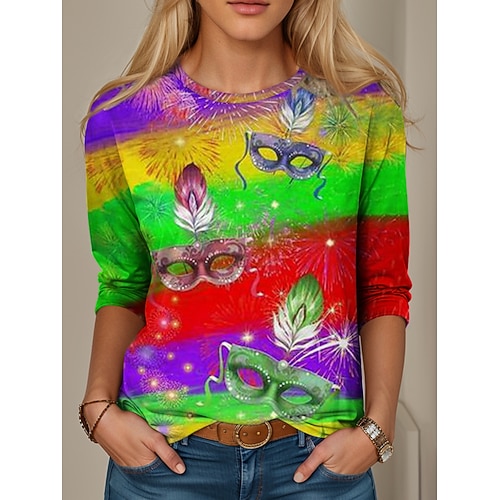 Maglietta da donna Carnival Graphic Geometric Vintage Stilosa Moderna a maniche lunghe colletto rotondo top regolari stampa quotidiana fine settimana verde primavera inverno