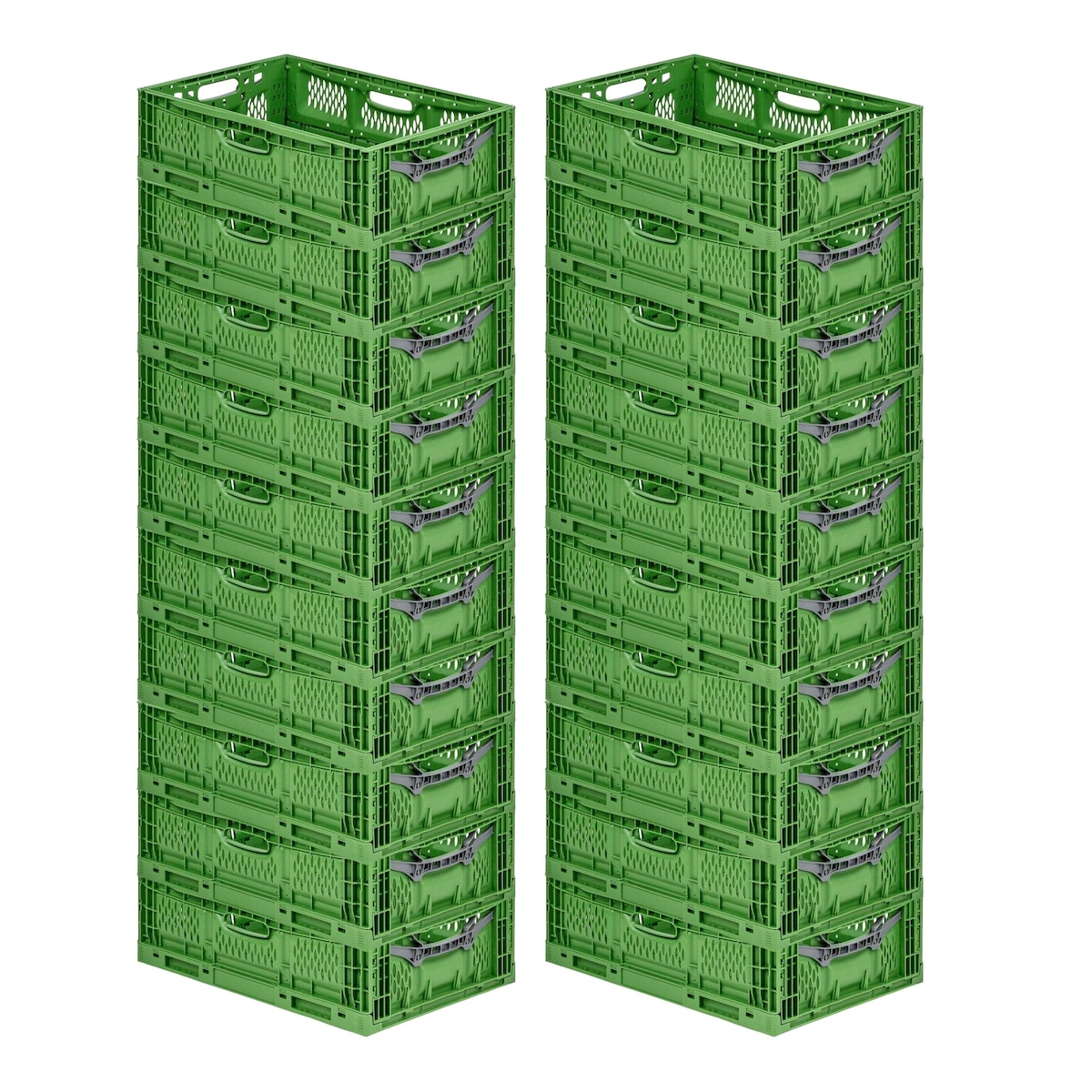 PROREGAL 10x Eurobox NextGen Grip mit Scharnierdeckel & grünen Verschlüssen | HxBxT 17x40x60cm | 34 Liter | Griffe geschlossen | Glatter Boden