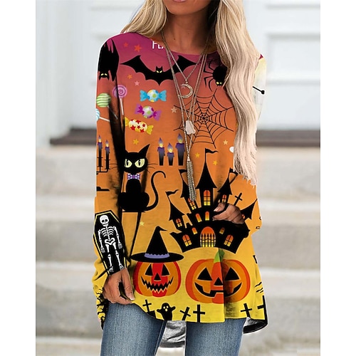 Per donna Mini Abito Abito Felpa Vestito Casual Moda Moderno All'aperto Halloween Quotidiano Vestibilità regolare Zucca Manica Lunga Girocollo Nero Blu Viola Arancione Primavera Autunno