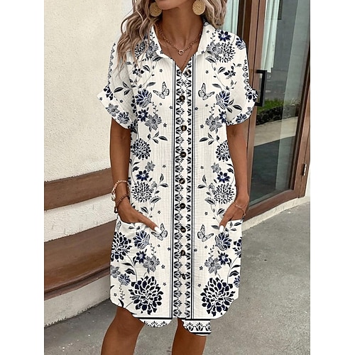 Per donna Mini Abito Abito Camicia Vestito Casual Abito Stampato Moda Moderno Quotidiano Spiaggia Weekend Vestibilità regolare Floreale Manica Corta Colletto a Camicia Blu Estate Primavera Autunno
